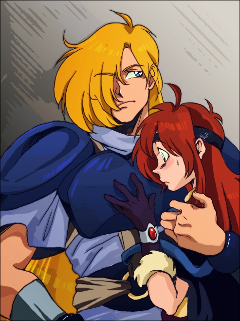 最近原作読んでて、3巻冒頭の捕まって、見張りにすけべぇこまされそうになるシーン(のガウリイ)がめっちゃ描きたくて、そのシーンだけ漫画風に描いたんですけど。描いて気づいたけど、これは流石になんちゃら法侵害とかになるんですよねぇ?